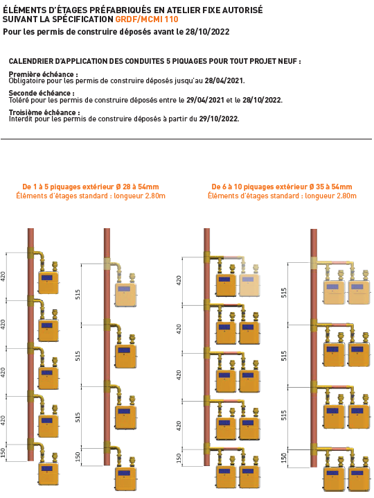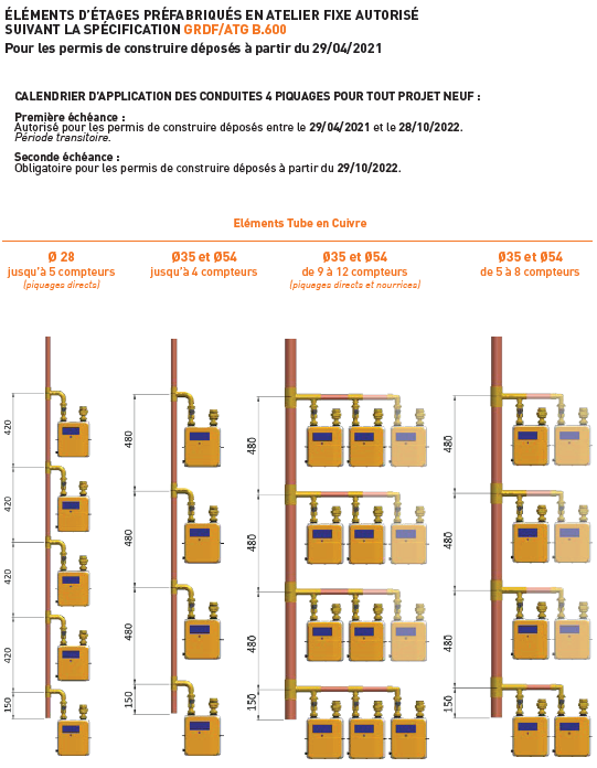 Les conduites montantes en cuivre alimentant en gaz des bâtiments neufs doivent obligatoirement être réalisées en éléments préfabriqués en usine, conformément à l'ATG B600.